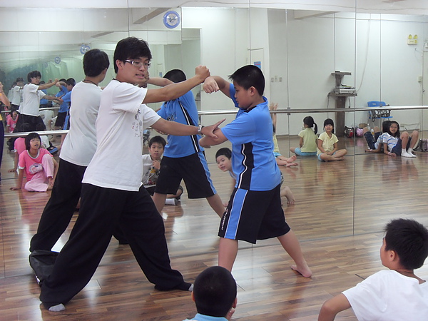 (小玉老師(左一)與何嘉仁銘傳分校小朋友開心合照。) 圖與文/小玉老師 隨著七月的結束,銘傳分校的暑期功夫課程也過了一半,但有些小朋友八月份因為功夫班額滿所以不能繼續參加。 接近七月底的時候,有些小朋友們知道自己八月份不能來繼續學功夫,每次上課都會一直吵著要小玉老師一定要把中興拳在七月教完。 當中興拳越學到後面時,相對動作的難度也跟著越來越高,為了能讓每位小朋友都能做出清楚正確的動作,小玉老師都會一個個的指導,一遍不會,再教第二遍、第三遍,直到他們能聽著口訣獨自完成動作。 七月最後一堂課,很多小朋友因為當天是返校日,無法前來上課,我正想著這樣一來,他們就無法把中興拳學完,好可惜時... 就看到幾個小朋友氣喘吁吁的背著書包跑過來,對我問說:「老師妳教完了嗎?我也要學!」 等他們進教室放完書包回來空地,一問之下才知道,原來他們知道今天小玉老師會把中興拳教完,所以一放學,他們就特地趕回來,需望能趕在功夫課下課前回來,把中興拳學完。 從一開始大家第一次見面,對彼此都很陌生,到後來對武術越來越有興趣! 上課時不但不是老師在督促學生要認真學,反而是這些小朋友嫌我每次都教太少,希望小玉老師能多教一點,讓他們學多一點, 真的很感動,很開心。